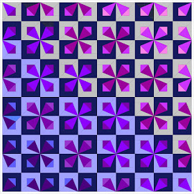 My Jeweled Kaleidoscope pattern, to be released this week, October 12th, comes also with the option to be made without the center circle appliques. I shared my pillow that I had made with a simple graduated color palette, but I wanted to share a few layout variations that could also be used for larger quilts.... and the amazing thing is that the change in design all comes from simple color placements.